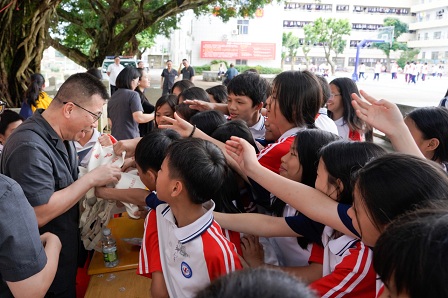 随后,法院干警在校园榕树下搭起了普法摊位,向学生们派发预防未成年人犯罪、校园欺凌、防毒禁毒等普法读本,与学生们积极互动,为他们解疑答惑。